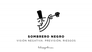 El negro es el juicio crítico o negativo sobre un tema. Advierte de riesgos y peligros. Se centra en la evaluación previsora o en el riesgo.